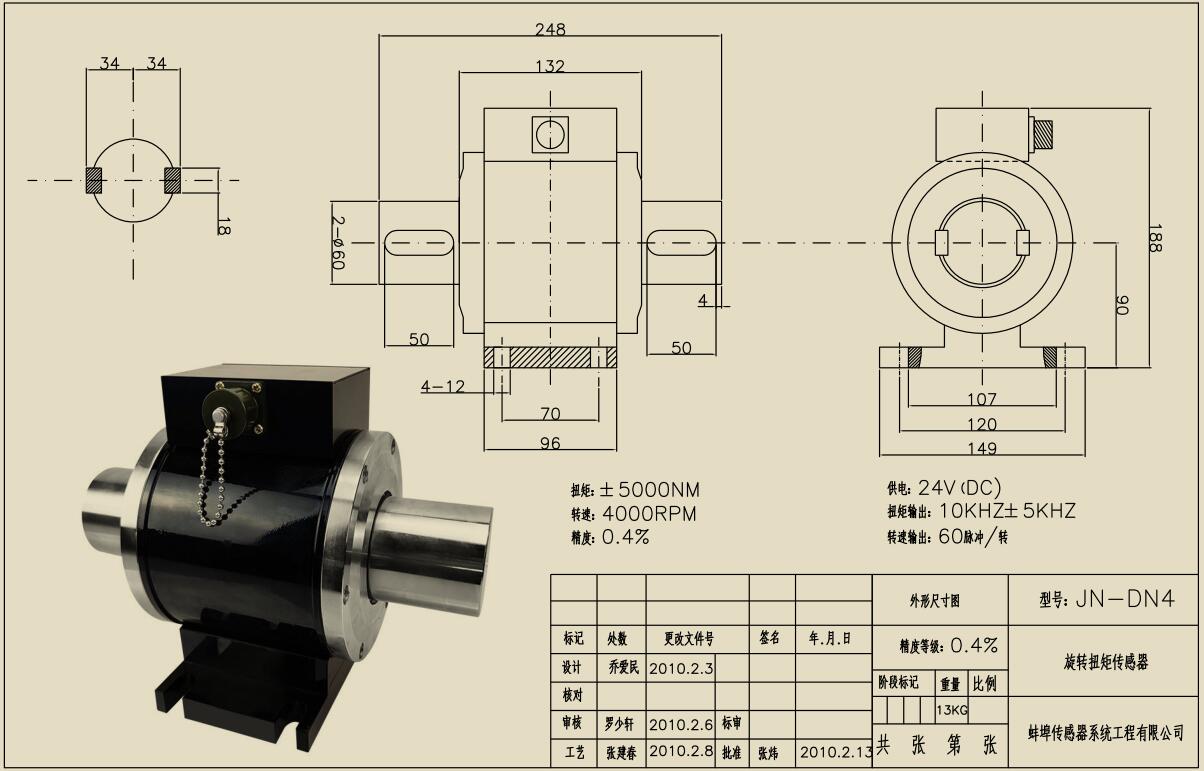 5、體積小、重傳感器可脫離二次儀表獨(dú)立使用,只需提供24VDC電源,即可輸出阻抗與扭矩成正比脈沖方波頻率信號